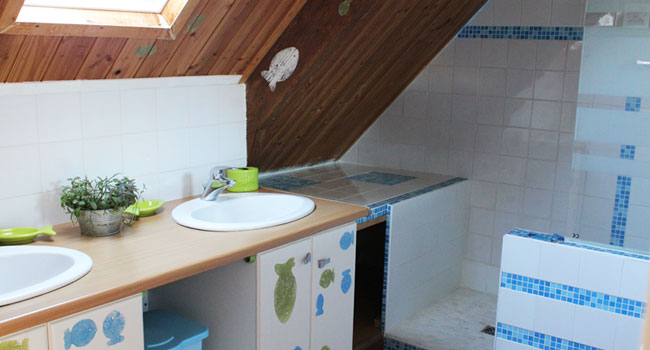 Une salle d'eau équipée de WC